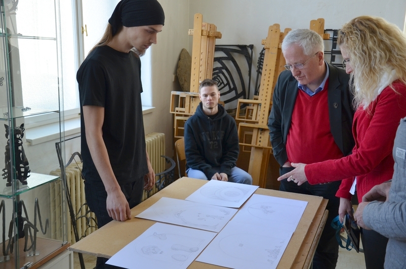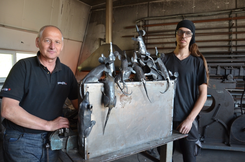 Letos dal starosta Ybbsitz Josef Hofmarcher jako zadání práce pro odbornou praxi vyzdobení dvou třímetrových výklenků v průchodu u historického řemeslného domu. Ze vzniklých návrhů si pak v březnu vybral dílo Petra Novotného, žáka druhého ročníku. Od 11. dubna do 22. dubna letošního roku tak v zapůjčené kovárně sedm chlapců v doprovodu technologa Ing. Miloslava Kalába, od rána do večera bušilo do kovadlin. Dřina vydala své plody a po povrchové úpravě a instalaci bude průchod zdobit mohyla z myší, které se chtějí dostat k pochoutce v podobě velkého preclíku a dvou ptáků bojujících o uzenou kýtu.