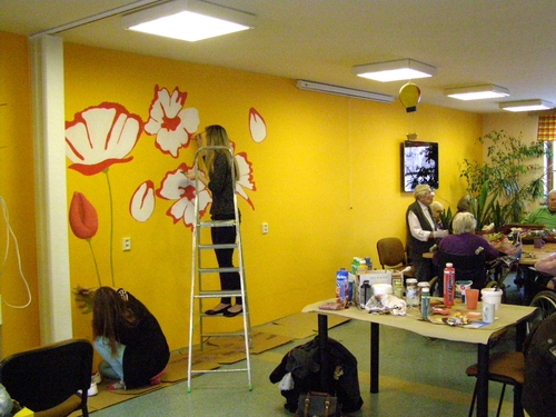 Už je to delší dobu, kdy sami naši žáci přišli s tím, že by chtěli zútulnit prostory, kde v Turnově žijí senioři, přispět svým dílem ke zpestření tohoto úseku života člověka. Žáci se byli podívat na prostory domova důchodců Pohoda i na Výšince a jejich odhodlání dostalo konkrétní podobu. Tak se stalo, že díky vstřícnému přístupu vedení a zaměstnanců domova důchodců Pohoda v Turnově měli žáci SUPŠ možnost navrhnout a realizovat dekorativní nástěnnou malbu v prostorách dílny, kterou pravidelně senioři využívají k různým aktivitám.