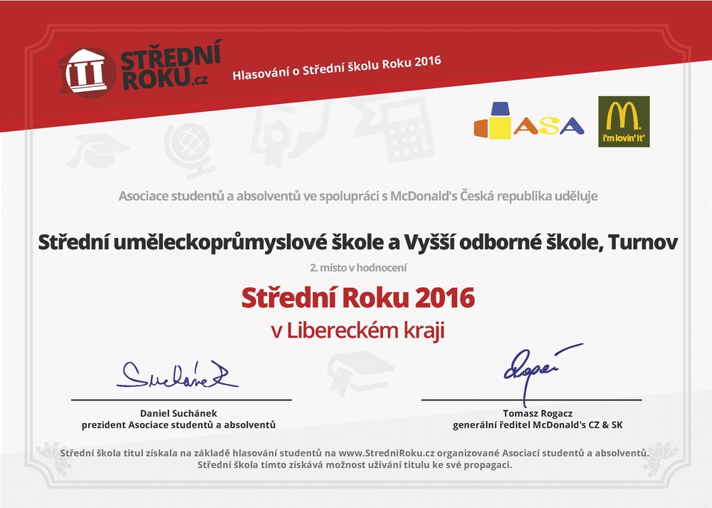 Titul je předáván na základě hlasování studentů na stránkách www.StredniRoku.cz. Hlasování je organizované Asociací studentů a absolventů. Všem, kteří nás podpořili velmi děkujeme.