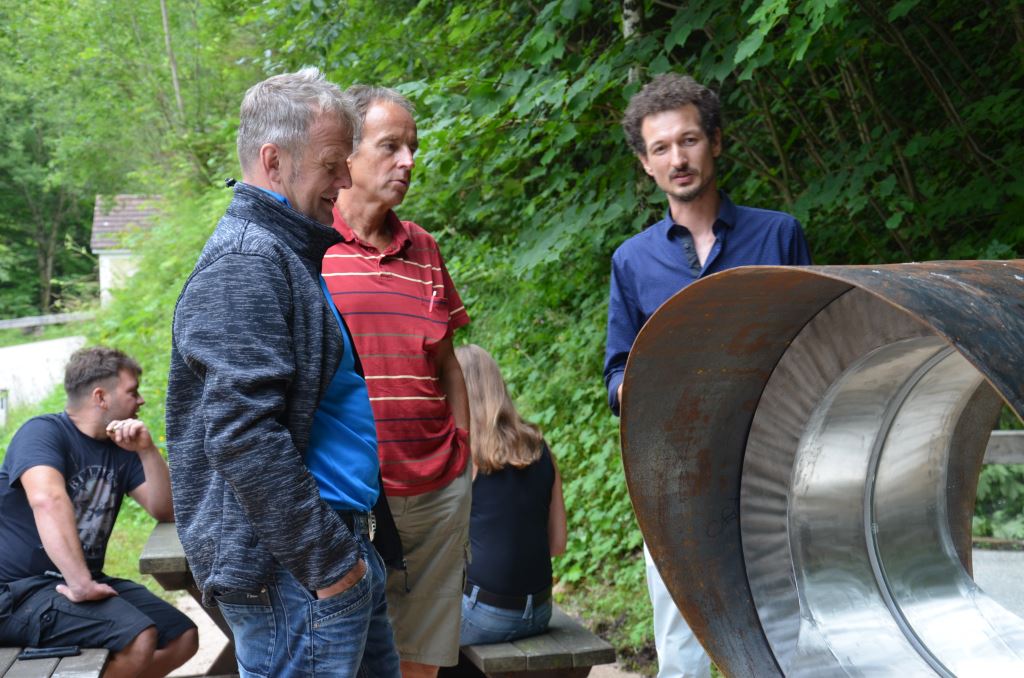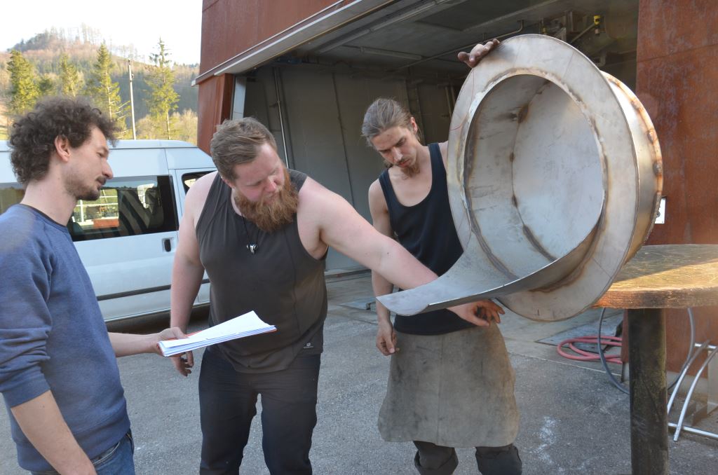Celá výprava se skládala z osmi studentů a pedagogického doprovodu. Jelo se tedy ve složení Petr Novotný, Viktor Frič, Vladimír Holomíček, Adrian Dänemark, Jiří Mikula, Jan Jeníček, Ondřej Kašpar a moje maličkost. V neděli 26. března nás v Ybbsitz čekalo vřelé uvítání a ubytování v místním skautském domě. Další den bylo seznámení s místem realizace projektu. V místní kovárně jsme nalezli vše potřebné a bez otálení jsme se pustili do díla. Následující dva týdny byly rozděleny do přibližně dvou fází. V prvním týdnu probíhaly přípravné práce a hrubá kompletace nosné konstrukce. Během této fáze také docházelo k doladění a řešení technologických i vizuálních detailů. V druhé fázi pak byla základní nosná konstrukce osazena zbývajícími díly. Tyto dvě fáze byly odděleny víkendem, kde se nám dostalo komentované prohlídky místních krás. Obzvláště zajímavou byla návštěva blízkého Waidhofenu, což je další město po proudu řeky Ybbs s bohatou kovodělnou historií. V místním kostele nám byla představena nádherná rarita. Monstranz v gotikizujícím stylu z roku 1492 zvaná „Messerermonstranz“ byla příslovečnou třešničkou.