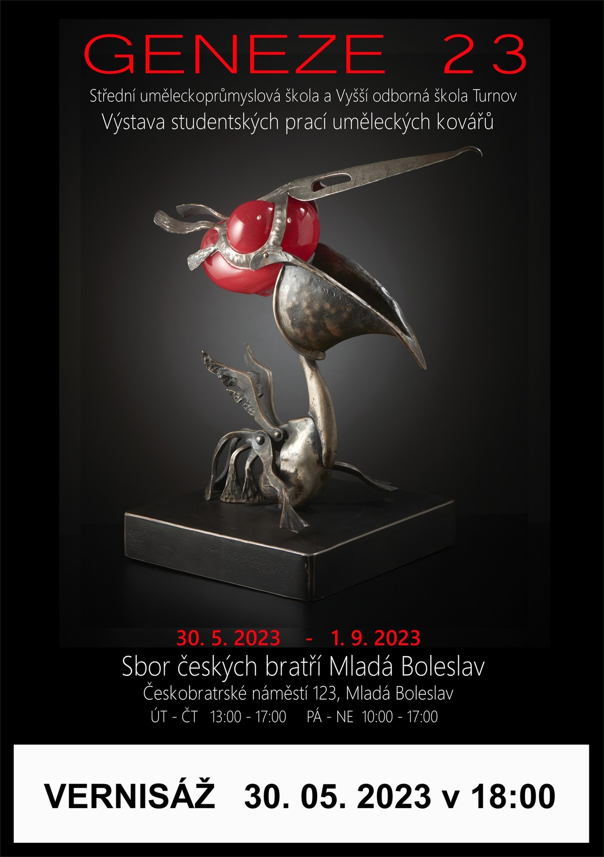 Dne 30. 5. 2023 proběhla vernisáž výstavy našich kovářů „Geneze 23" v bazilice Sboru českých bratří v Mladé Boleslavi.