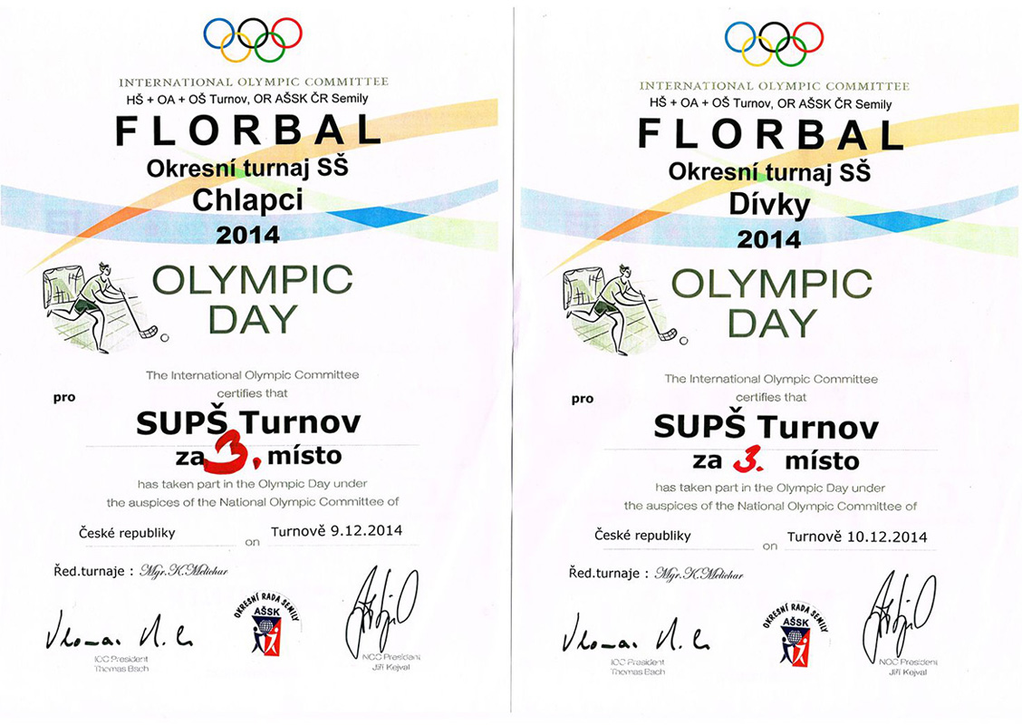 V obou případech se umístilo družstvo dívek i chlapců na 3. místě. Je nutné vyzdvihnout především výkony Jana Seidla, Ondřeje Novotného, Filipa Bartoně, Marka Berky, Kryštofa Uhrina a výborný výkon brankáře Adama Rady a především dívčího zástupce tohoto smíšeného týmu bývalé české reprezentantky Leony Müllerové, která byla i výraznou oporou družstva dívek. Zde je nutné ocenit nasazení celého kolektivu i s výkonem brankářky Moniky Fricové. Všem za výbornou reprezentaci školy děkujeme.