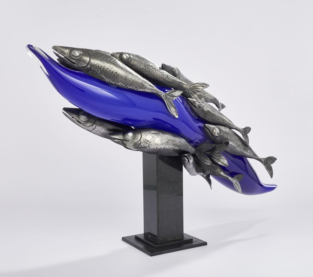 Pro Kristiána Kitzbergera je nejcharakterističtější animální figurální tvorba v návaznosti na formu, kterou ztělesňuje zkratkou v oceli, tu doplňuje sklem a bronzem.